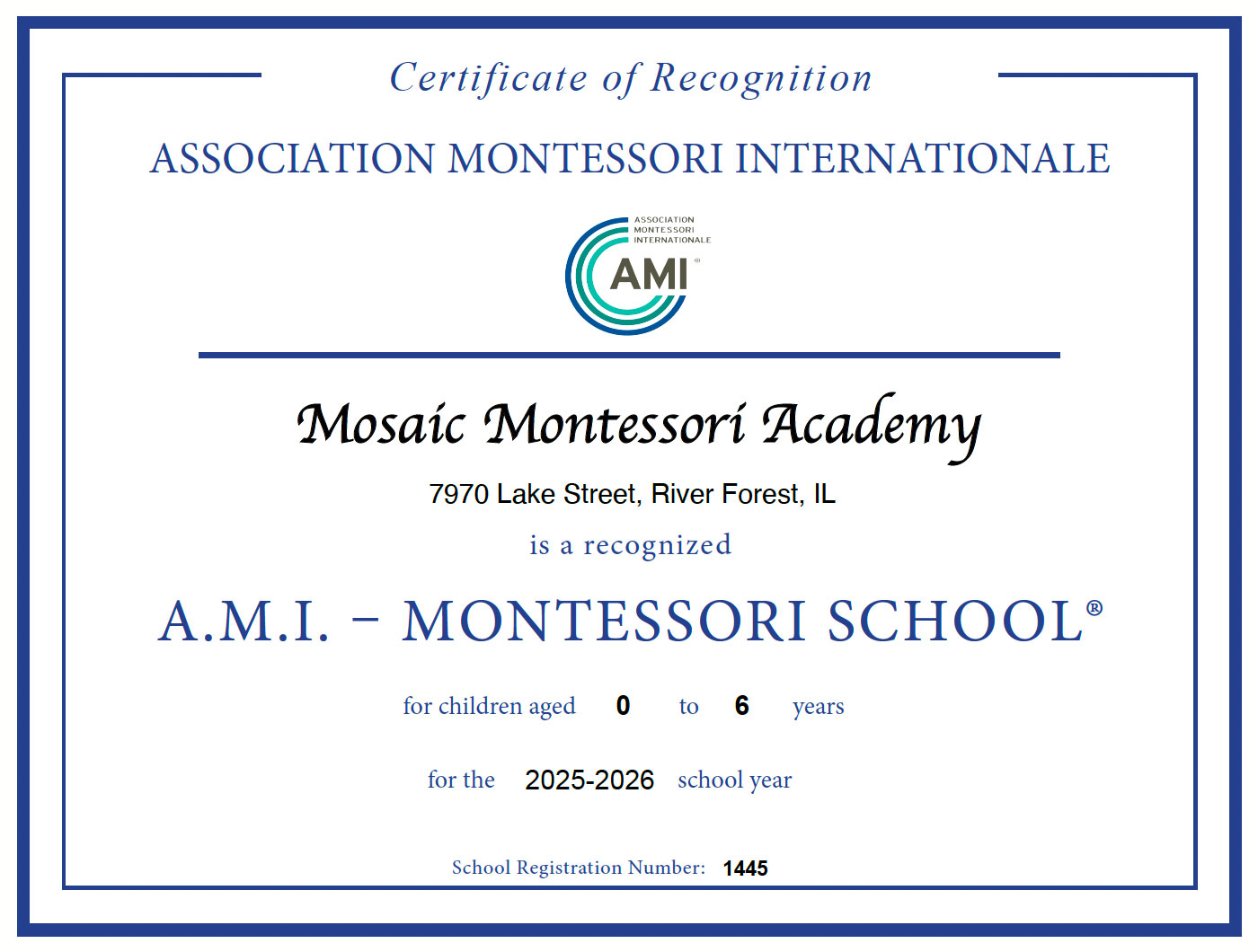 Mosaic Montessori Academy 7970 Lake St, River Forest, ILThis is just a test event...